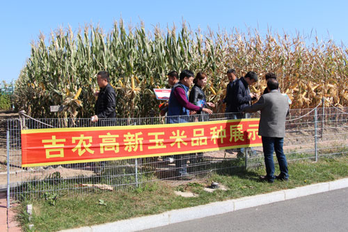 室外的50畝雜交玉米品種種植展區,展示了當前國內種企最前沿、具潛力的優良品種,是此次展會有別于前十屆的一次創舉,成為本次展會的一大特色。展區按品種熟區劃分,我公司展出了吉單50、吉單558、吉單631、吉單441、吉單33、吉單53、吉單27等11個名優新品種,這些品種展現出了優良的綜合性狀。吉林省種子管理總站陳學軍副站長、研究員主講介紹的“室外種植展區品種種植情況報告會”的數據統計報告中,我公司報送的吉單50、吉單441、吉單631、吉單53、吉單558、吉單27更是以優異的綜合表現,在全種植區170余份展示品種中,成為38個綜合性狀最優秀豐產性最好的品種之一。
