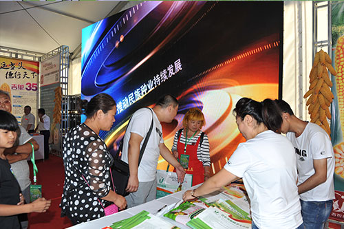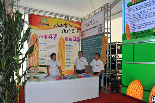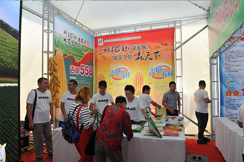 玉米產(chǎn)業(yè)博覽會有七個展區(qū),有書畫筆會展區(qū)、玉米全株產(chǎn)業(yè)鏈圖片展區(qū)、種植業(yè)結(jié)構(gòu)調(diào)整展區(qū)、農(nóng)村電商展區(qū)、玉米全株產(chǎn)業(yè)鏈產(chǎn)品展示交易區(qū)、玉米種子展區(qū)、畜牧業(yè)展區(qū)。我公司在玉米全株產(chǎn)業(yè)鏈圖片展區(qū)重點展示了吉單27、吉單522、吉單35、吉單519、吉單505等獲得過國家或省里重大科技獎勵的品種。玉米種子展區(qū)中有主銷玉米品種的資料宣傳,重點展示了公司的吉單558、吉單50、吉單66、吉單47、吉單35等新品種;LED大屏幕宣傳公司的整體形象;在東側(cè)的主通道上有新品種種植區(qū),重點展示了公司即將推出的新品種,吉單1402、吉單84、吉單96、吉單510等。